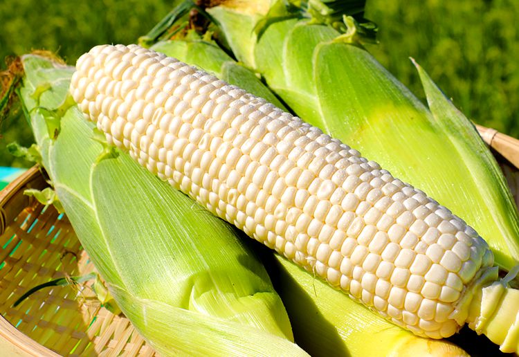 | 解説 | 従来のスイートコーンよりも甘味が極めて強く、果皮は軟らかく、シャキシャキとした驚きの食味です。粒色は従来の白色品種のスイートコーンと異なり、クリアな純白粒で、 調理後も色のくすみが少ないのが特長です。新鮮なうちは、生で食べられますが、茹でる場合6~8分、電子レンジの場合3分。 調理後、色が黄色くくすみますが、シャキシャキとした歯ごたえとさわやかな甘みは変わりません。但東町で7月の下旬に50アールの畑で約2トンだけ取れる、この地の名産品です。 | |